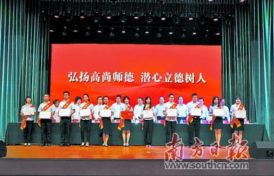 在2018年濠江区教师节表彰大会,一批教师获得表彰。受访者供图